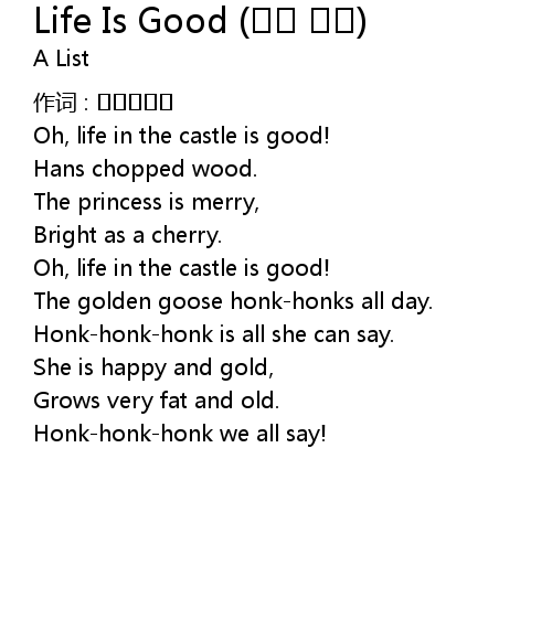 | Song | Life Is Good (황금 거위) |