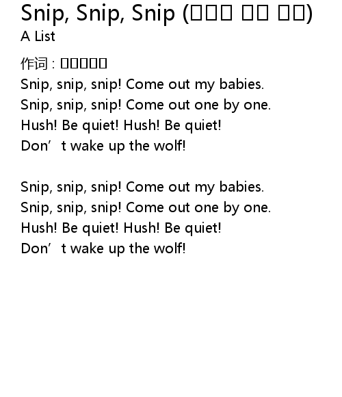 | Song | Snip, Snip, Snip (늑대와 아기 염소) |