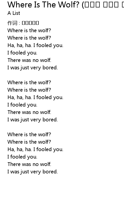 | Song | Where Is The Wolf? (양치기 소년과 늑대) |