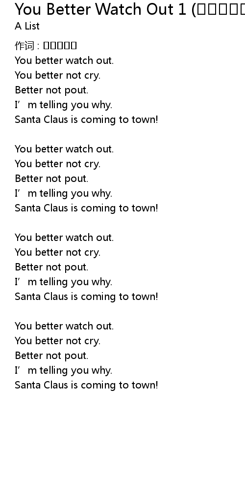 | Song | You Better Watch Out 1 (크리스마스 선물 목록) |