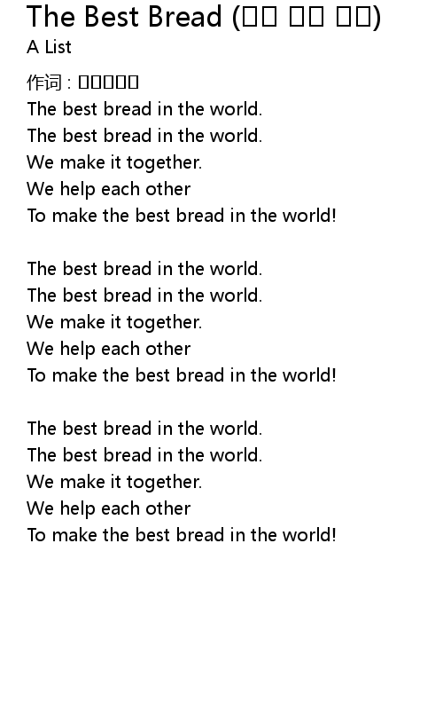 | Song | The Best Bread (붉은 꼬마 암탉) |