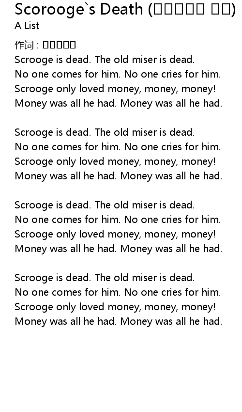 | Song | Scorooge`s Death (크리스마스 캐롤) |