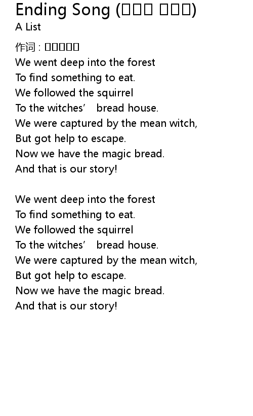 | Song | Ending Song (헨젤과 그레텔) |
