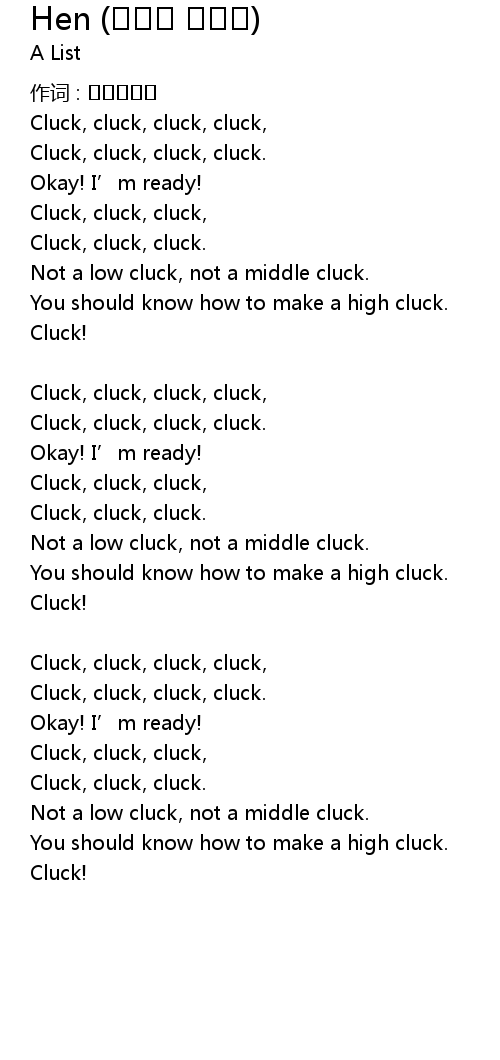 | Cluck, cluck, cluck, cluck, | |