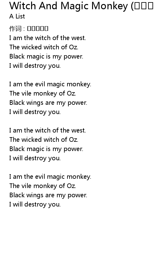 | Song | Witch And Magic Monkey (오즈의 마법사) |