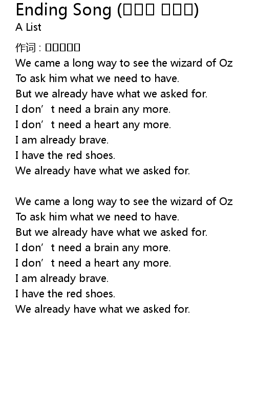 | Song | Ending Song (오즈의 마법사) |