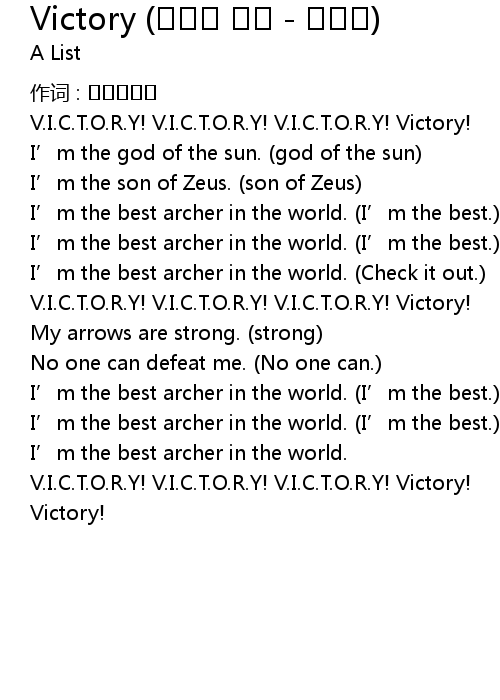 | V.I.C.T.O.R.Y! V.I.C.T.O.R.Y! V.I.C.T.O.R.Y! Victory! | |