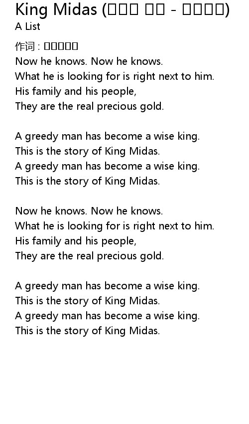 | Song | King Midas (그리스 신화 - 미다스왕) |