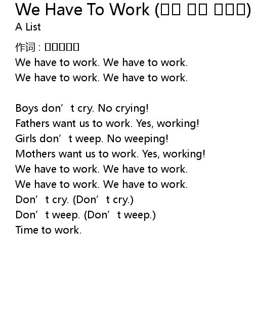 | Song | We Have To Work (피리 부는 사나이) |