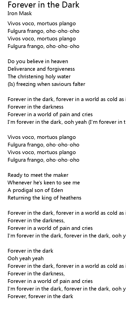 I'm forever in the dark, forever in the dark, ooh yeah, |
