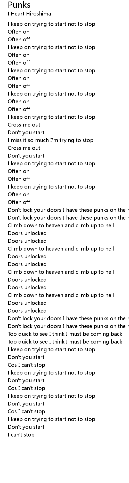 I keep on trying to start not to stop |