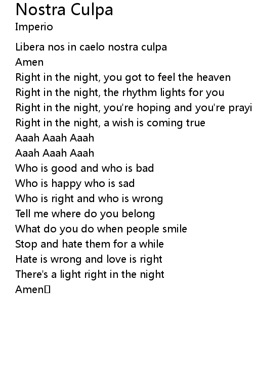 | Song | Nostra Culpa |