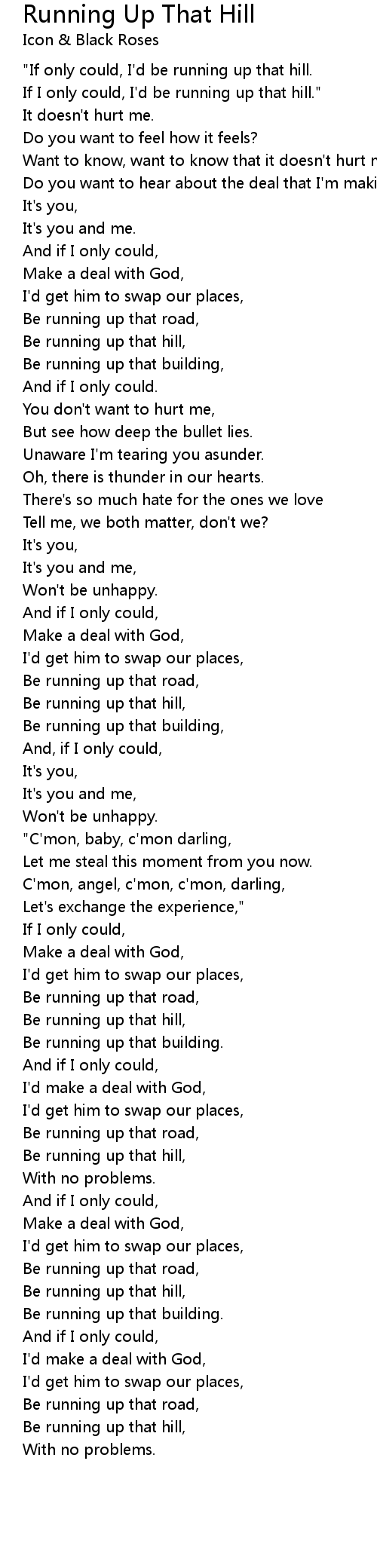 "If only could, I'd be running up that hill. |