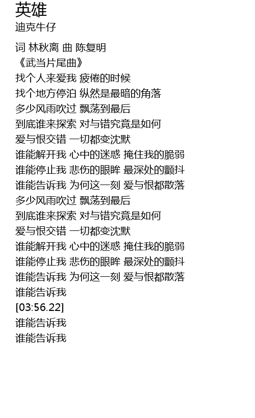 | [03:45.91] | 谁能告诉我 |