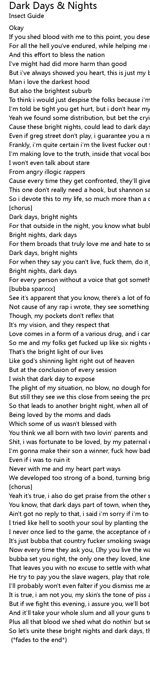 | Cause these bright nights, could lead to dark days and vice versa | |