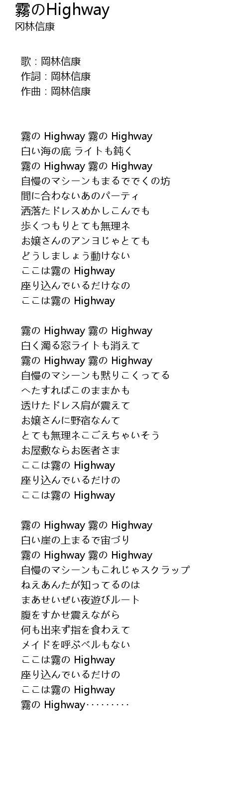 | 霧の Highway 霧の Highway | |