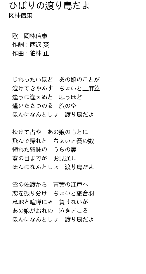 | Song | ひばりの渡り鳥だよ |