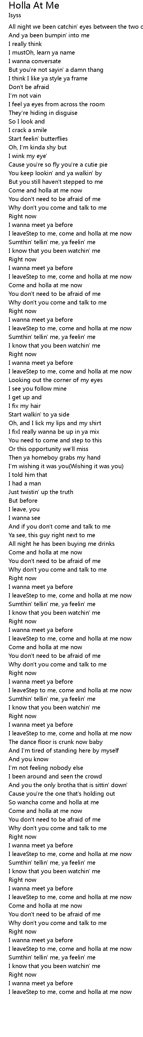 So wancha come and holla at me |