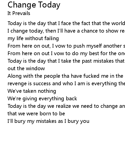 Today is the day that I face the fact that the world is what I make of it and if I change today, then I'll have a chance to show real true love for one thing in my life without failing |