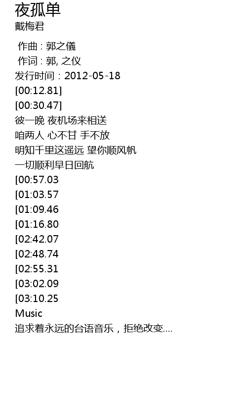 | [03:58.55] | 追求着永远的台语音乐,拒绝改变.... |