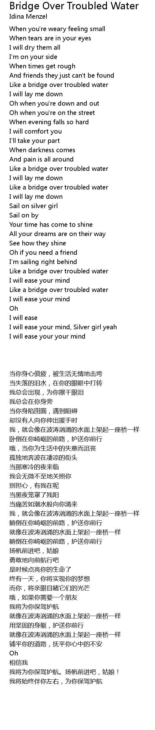 Like a bridge over troubled water |