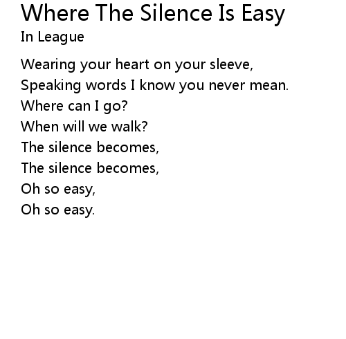 | Song | Where The Silence Is Easy |