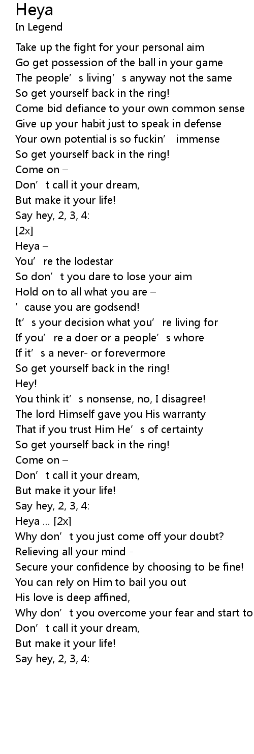 | Say hey, 2, 3, 4: |