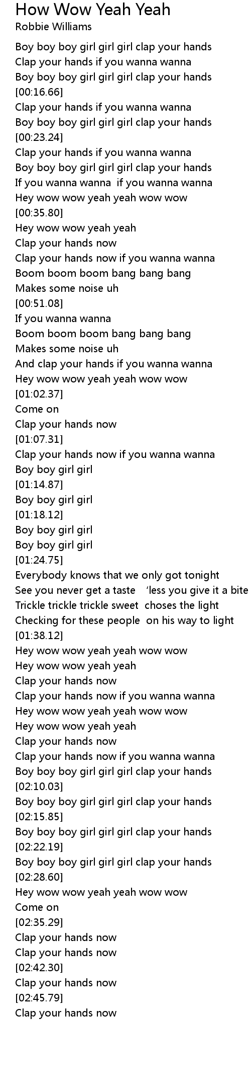 | [00:41.83] | Clap your hands now if you wanna wanna |
