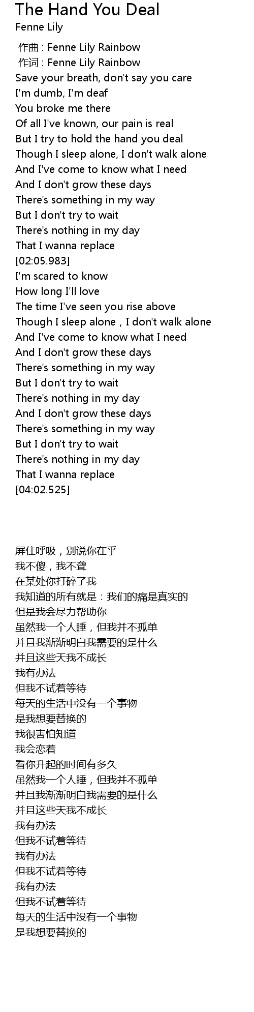 | [00:01.000] | 作词 : Fenne Lily Rainbow |