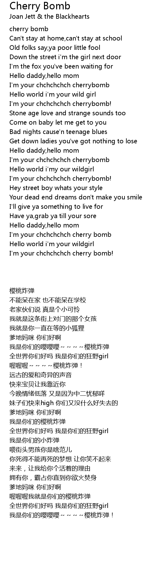 I'm your chchchchch cherry bomb |