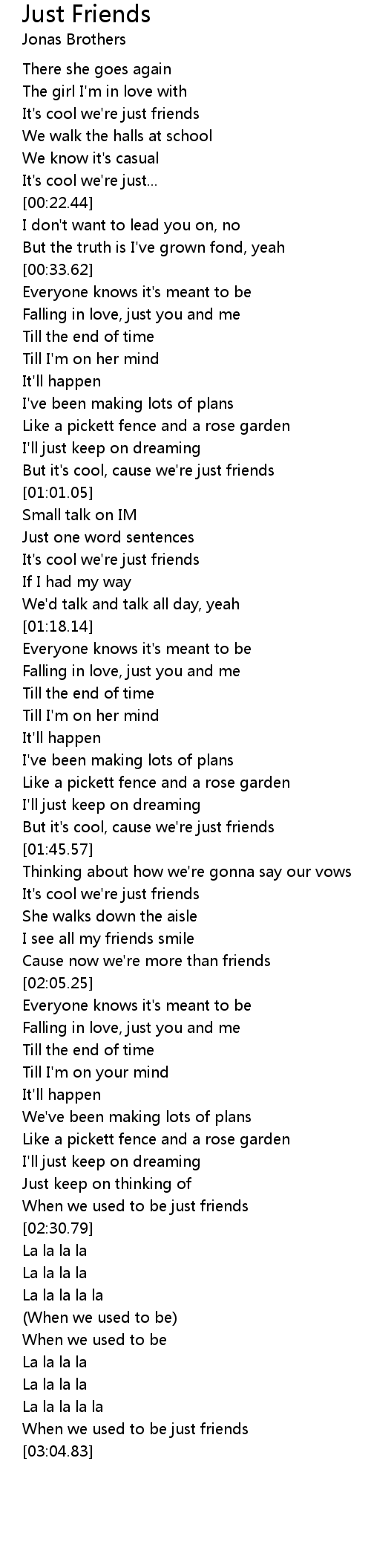 It's cool we're just friends |