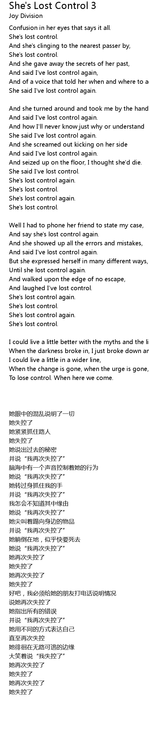 She said I've lost control again. |