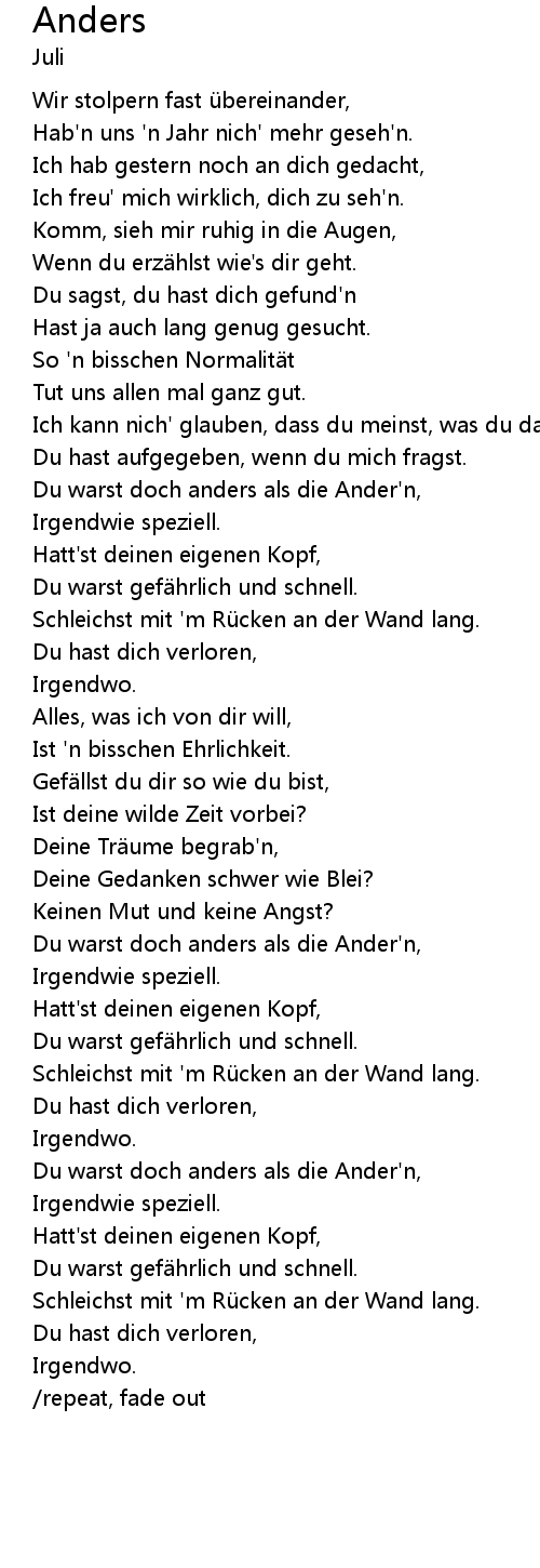| Du warst doch anders als die Ander' n, | |