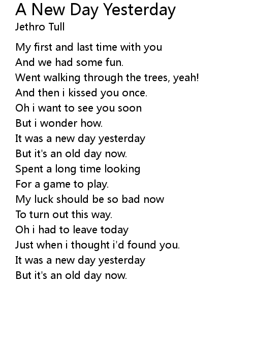 | Song | A New Day Yesterday |