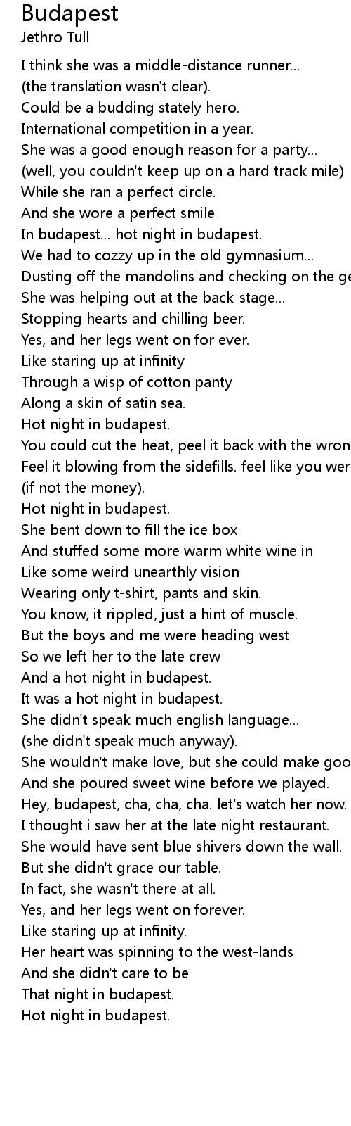 Hey, budapest, cha, cha, cha. let's watch her now. |