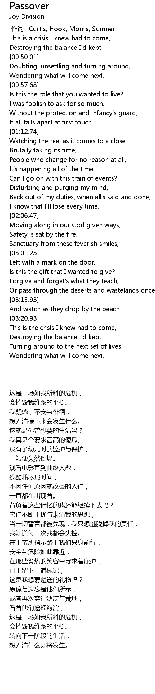 | [00:00.00] | 作词 : Curtis, Hook, Morris, Sumner |