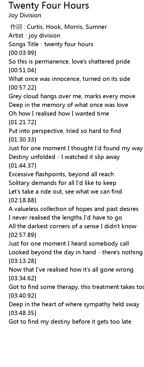 | [00:00.00] | 作词 : Curtis, Hook, Morris, Sumner |