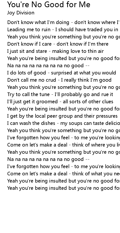 Yeah you're being insulted but you're no good for me |