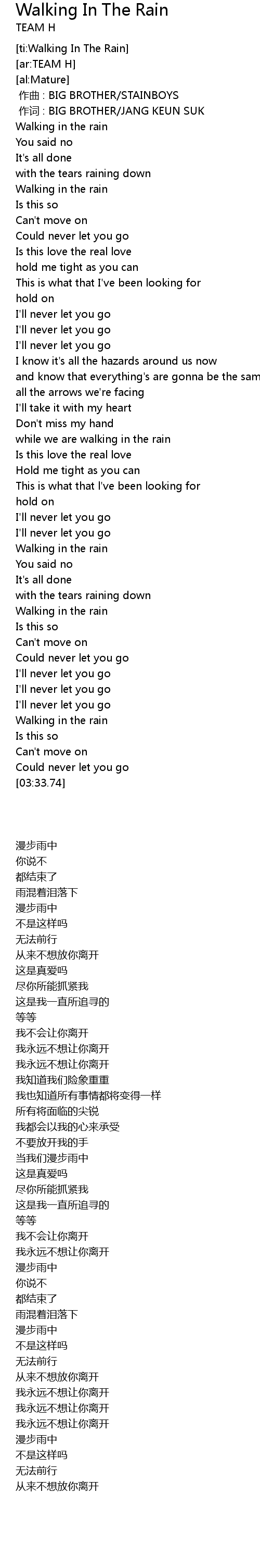 | [03:23.37] | Walking in the rain |