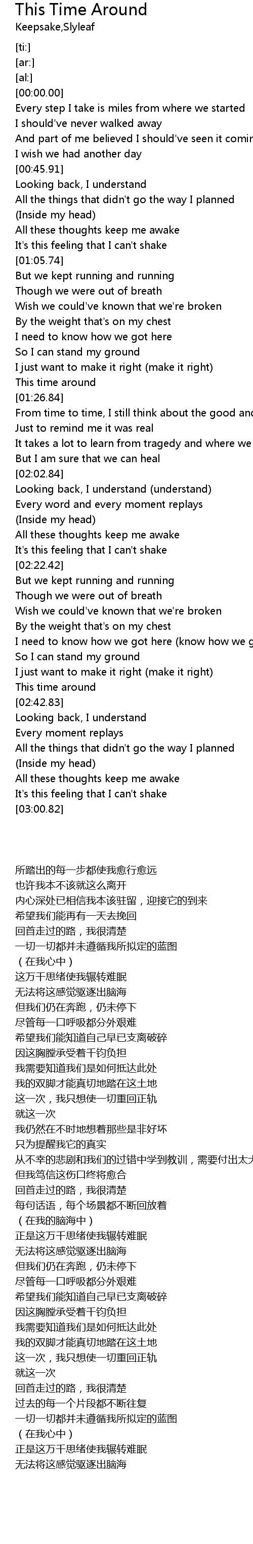 | [01:45.22] | From time to time, I still think about the good and the bad |