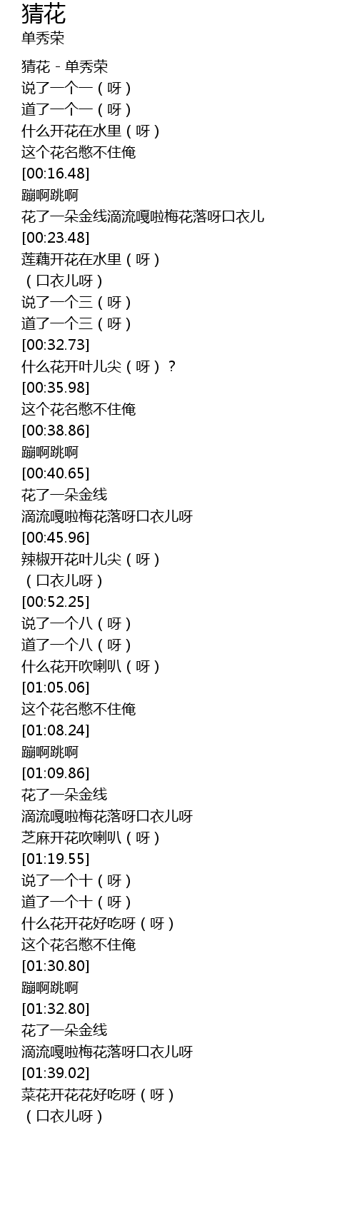 | [01:39.58] | 菜花开花花好吃呀(呀) |