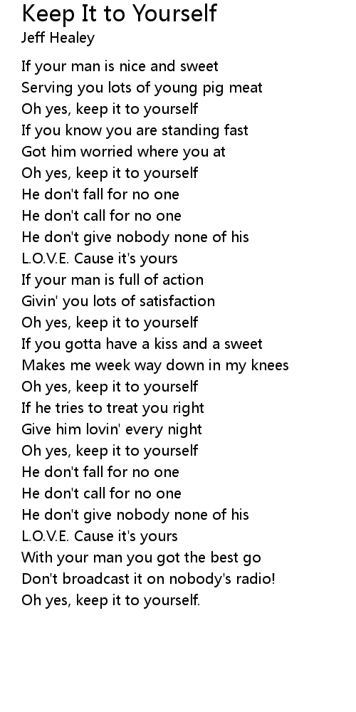 Oh yes, keep it to yourself |