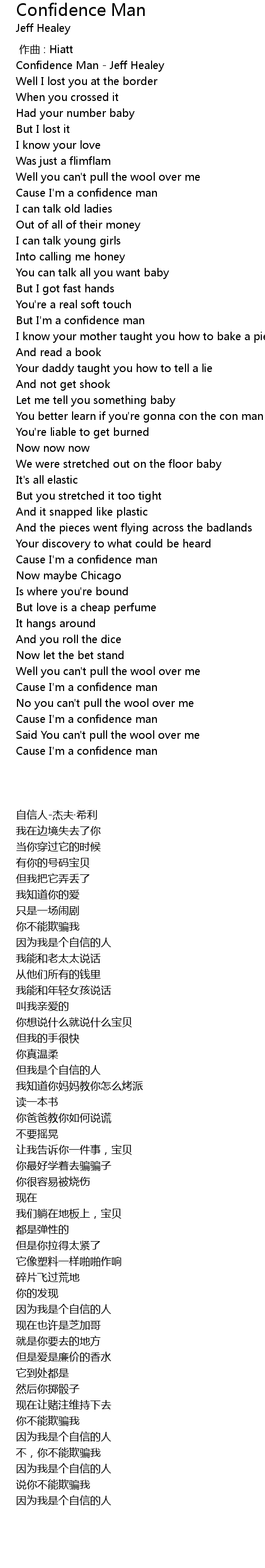 | [00:01.464] | Confidence Man - Jeff Healey |