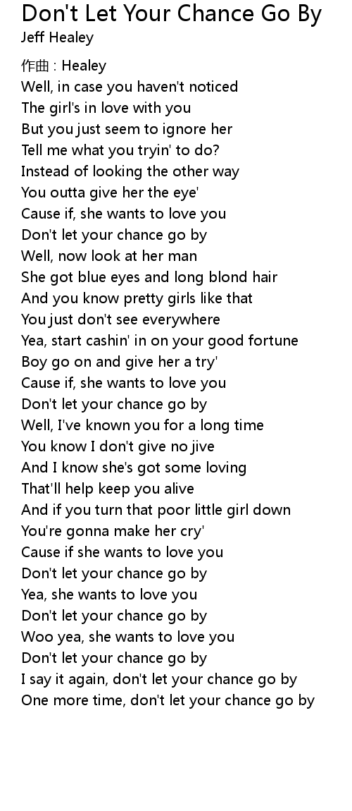 | I say it again, don't let your chance go by | |