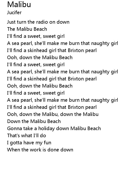 Ooh, down the Malibu, down the Malibu |