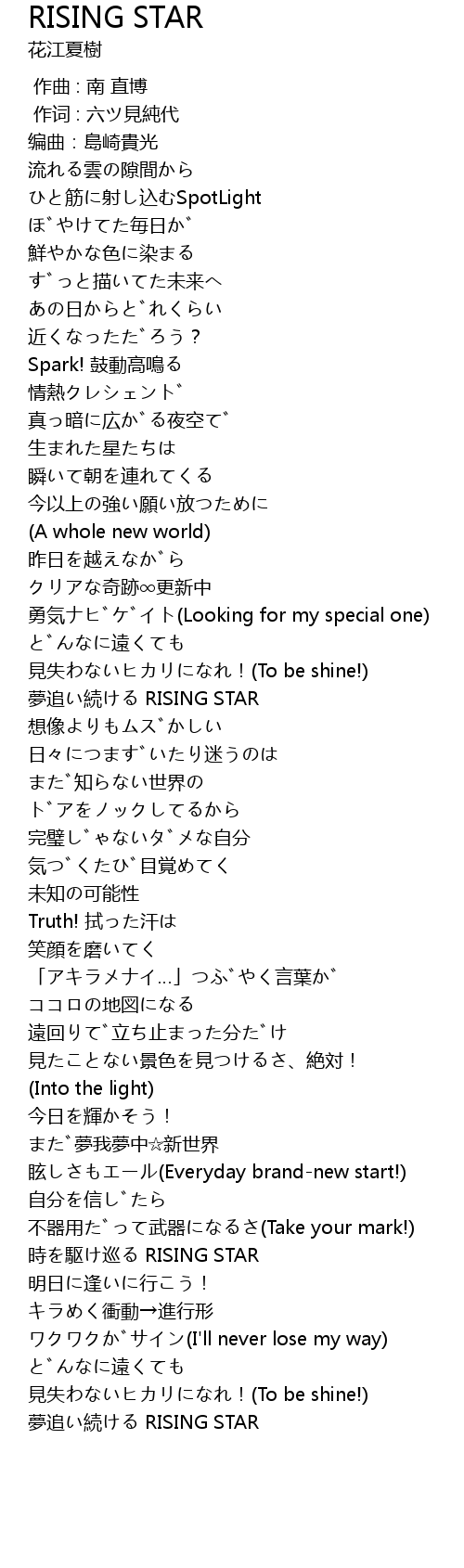 | [03:11.916] | 見失わないヒカリになれ!(To be shine!) |