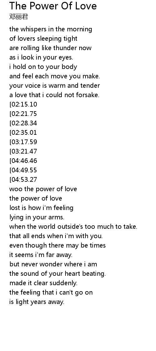 | [05:30.01][04:53.27][03:34.71] | of the power of love. |
