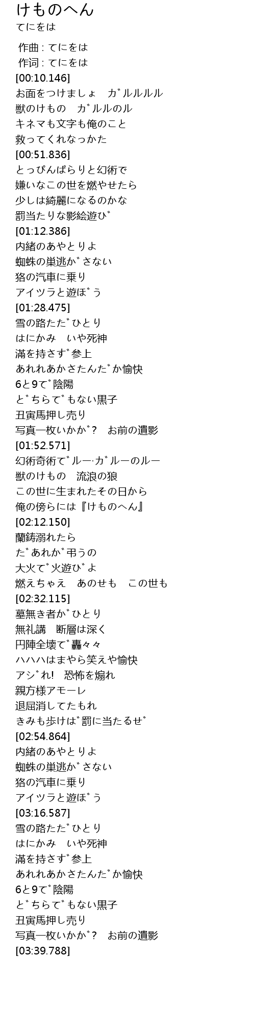 | [02:06.615] | 俺の傍らには『けものへん』 |
