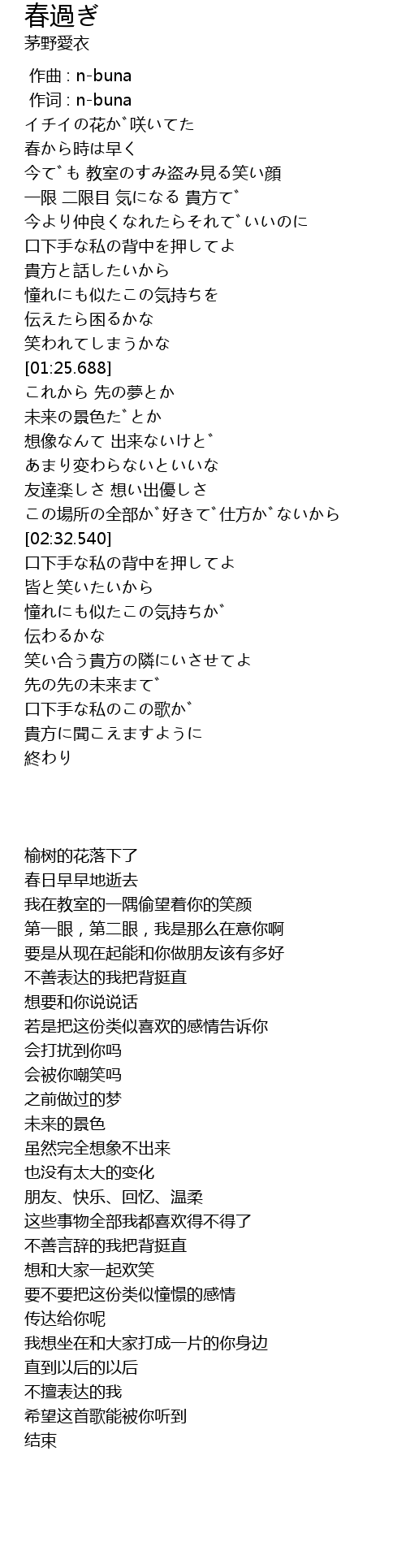 | Song | 春過ぎ |