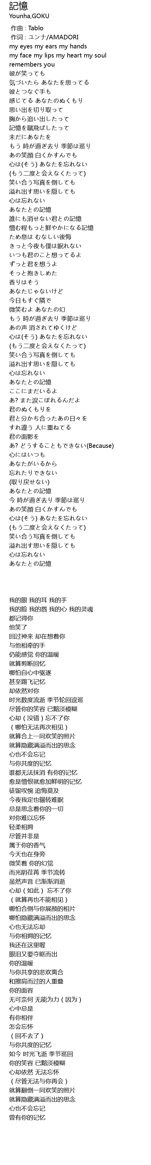 | [03:31.34] | あなたとの記憶 |
